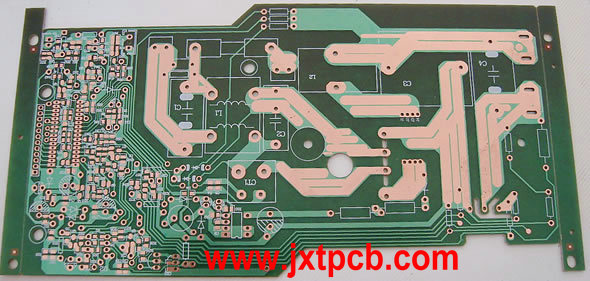 2、各元件之间的连接导线在拐弯处和两线相交处不能拐直角,须用曲线过渡,也不能相互交叉和迂回太远。有些导线实在做不到这一点时,可以考虑在印刷板的反面印制导线,再用穿钉与正面电路连接,或在焊接元件时另外用绝缘导线连接。