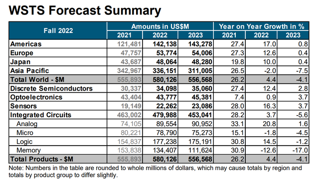 IC Insights发布了类似的观点,认为2023年全球半导体销售额将下降5%。